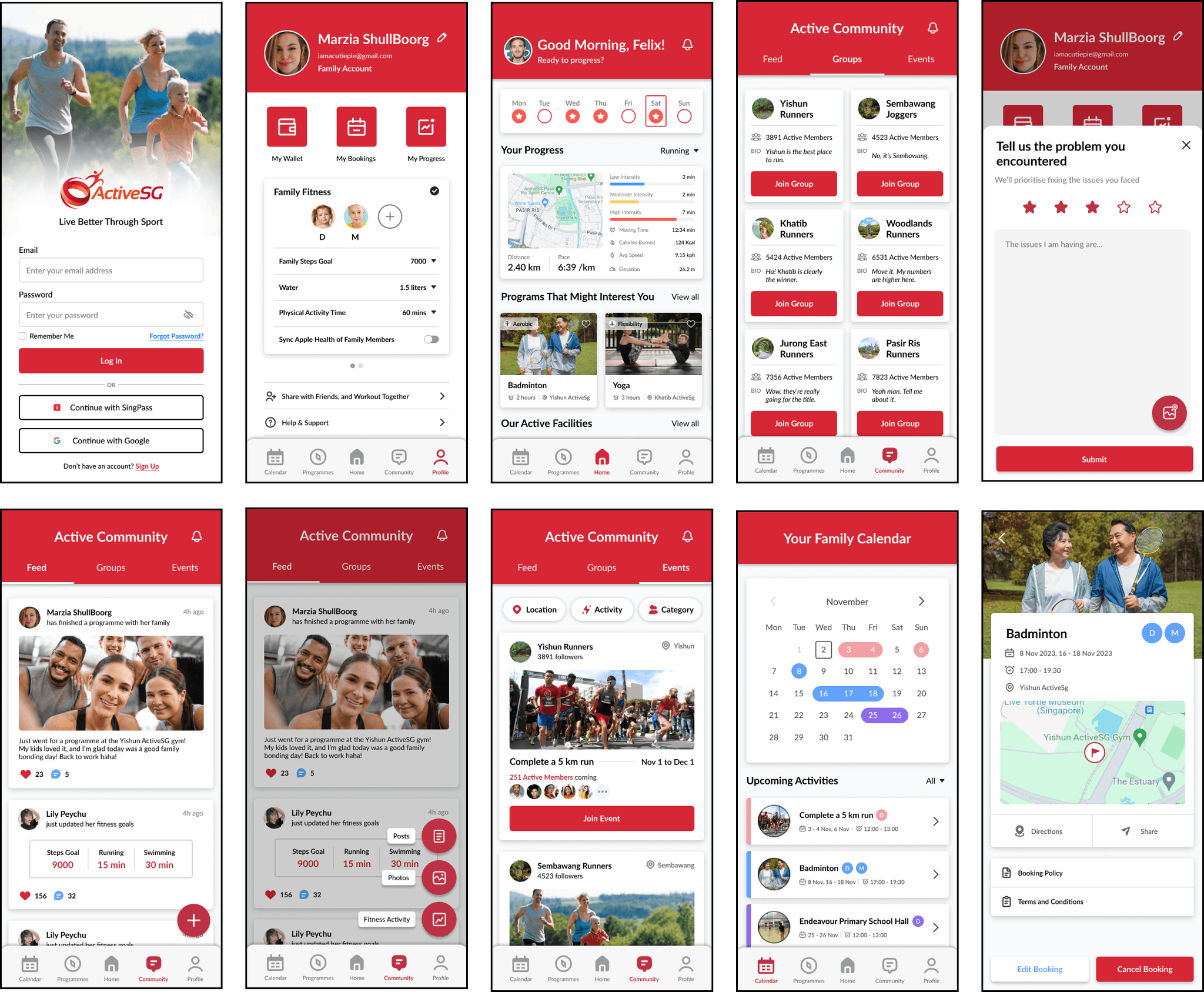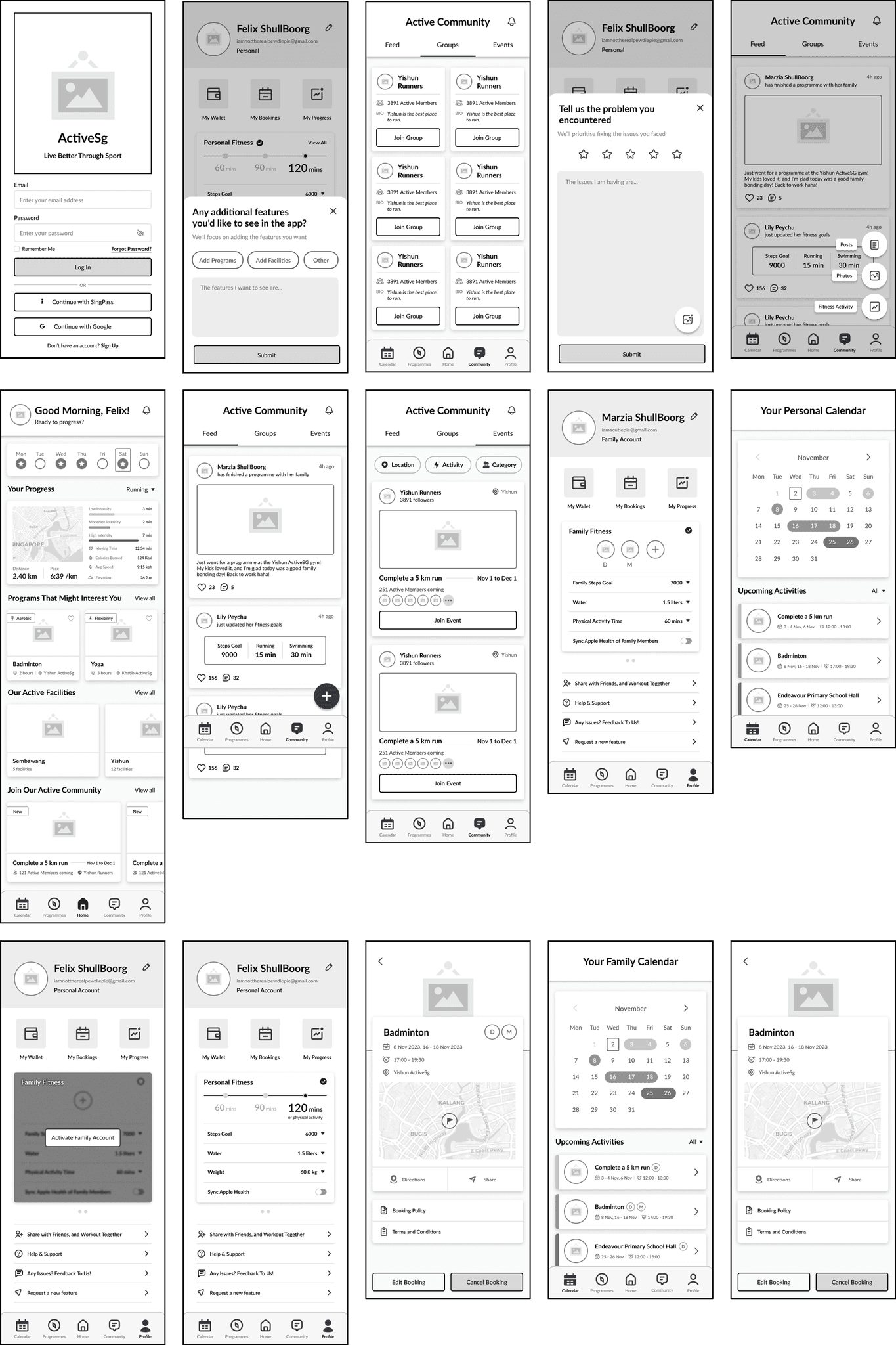 Finally, I developed high-fidelity screens and built an interactive prototype in Figma to simulate these features. I focused on designing intuitive interactions for both individual and family user journeys, aiming to make ActiveSG more inclusive and community-oriented.