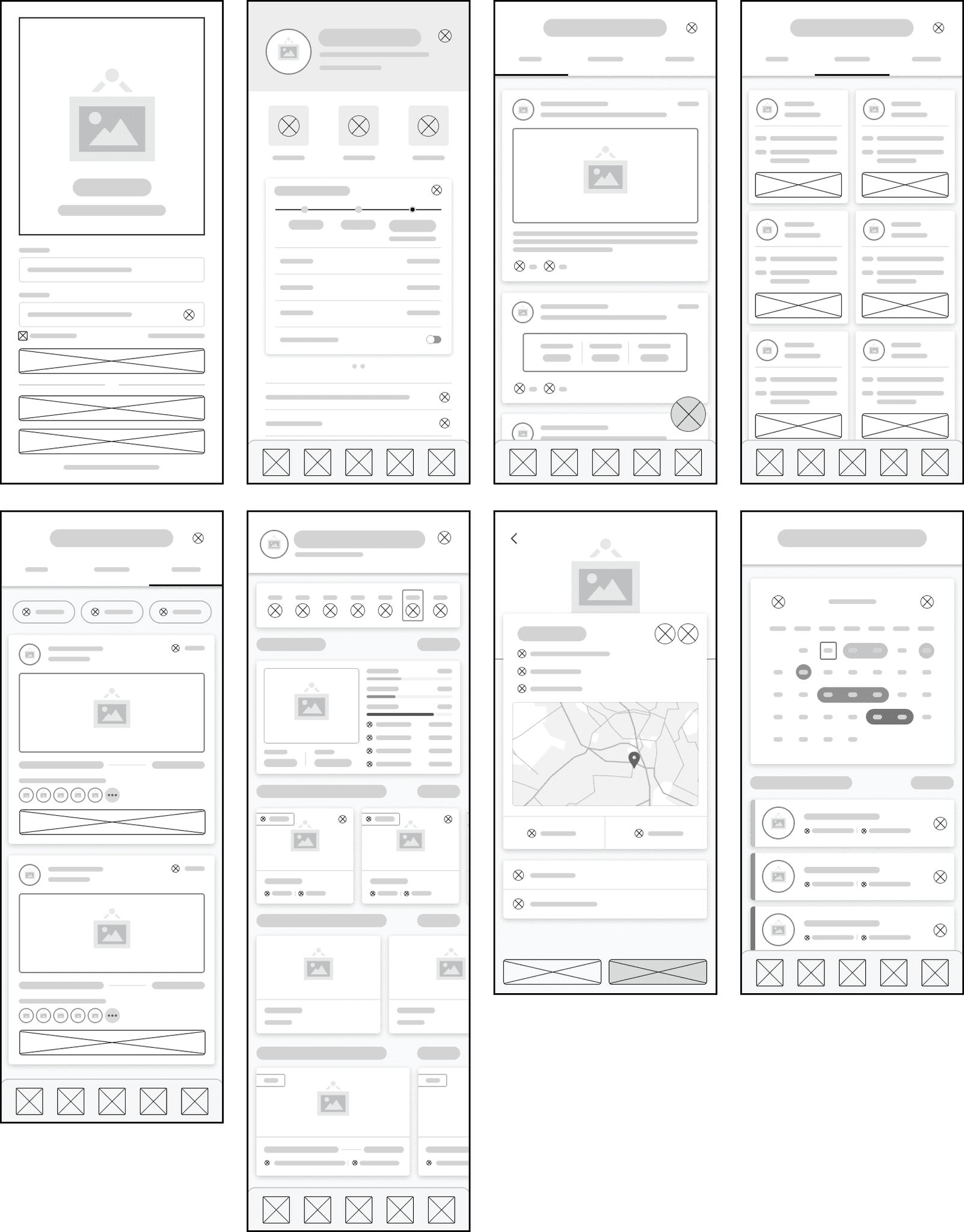 I began with low-fidelity wireframes to explore layout and navigation ideas, focusing on the revamped Community tab, Events feature, meet-up creation and sharing, as well as the new family account setup.