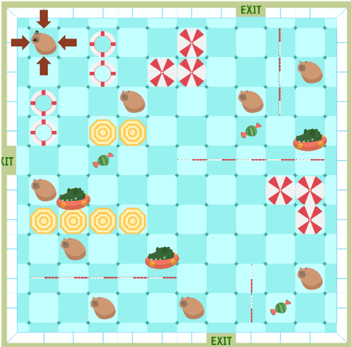 Capybarism is a 2D, top-down, turn-based maze strategy game that blends lighthearted humor with strategic gameplay. Players take on the role of Salary Bara, the owner of a capybara business, tasked with motivating their Relaxed Bara employees back to work using tasty oranges while navigating various environments such as grasslands, pools, and swamps.
