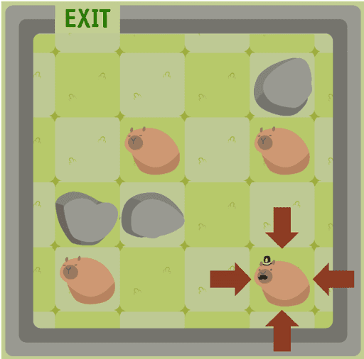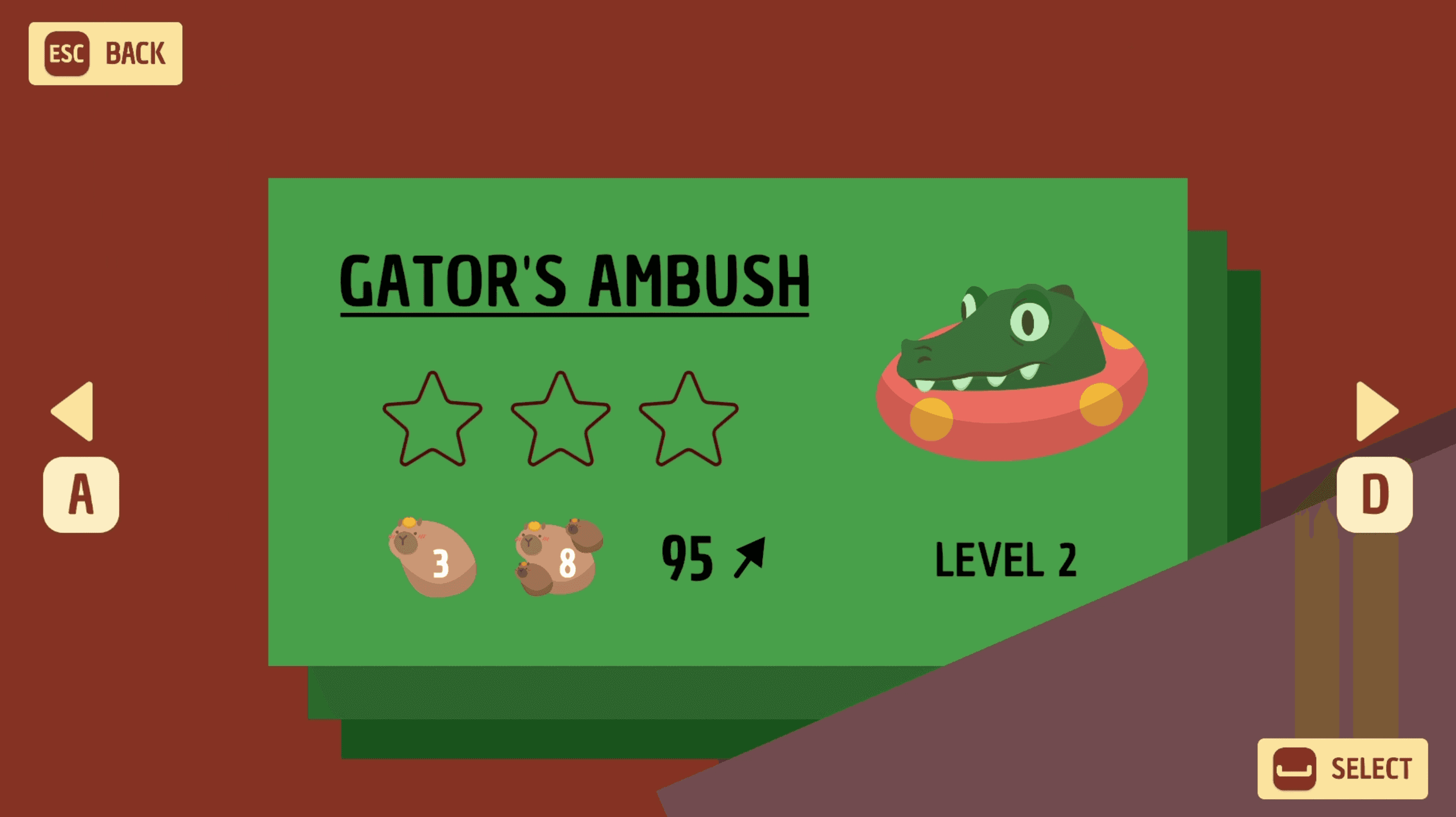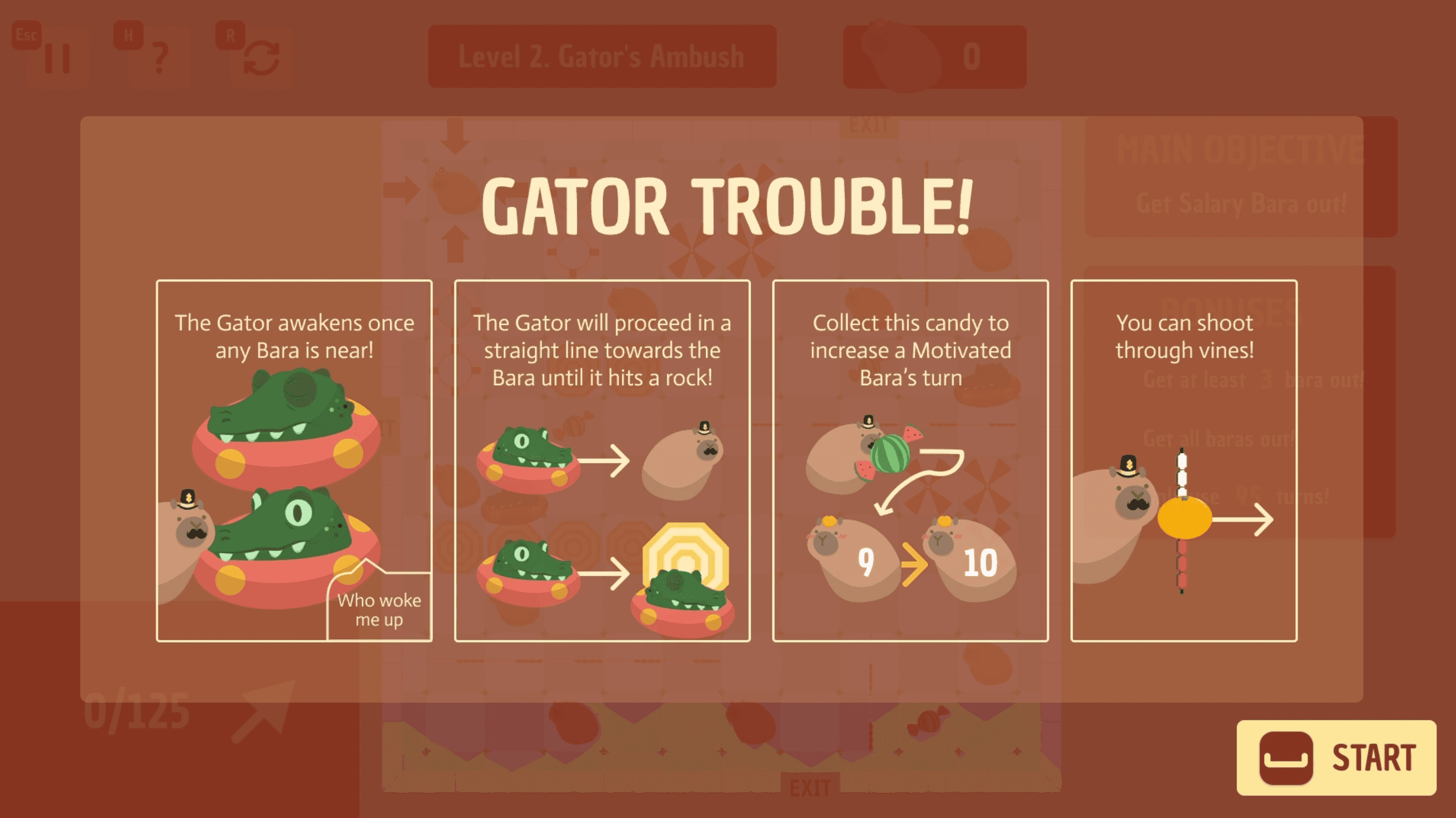 The game challenges players to guide Salary Bara and as many Motivated Baras as possible to safety, avoiding enemies like the cunning Peli and steadfast Gator, each with unique movement patterns. With limited actions and stars awarded based on performance, Capybarism offers a balance of strategy, charm, and fun.