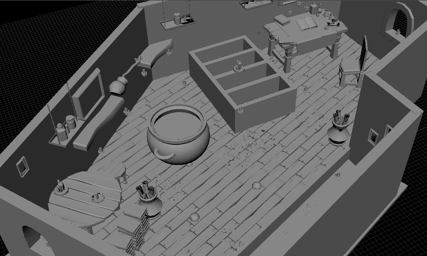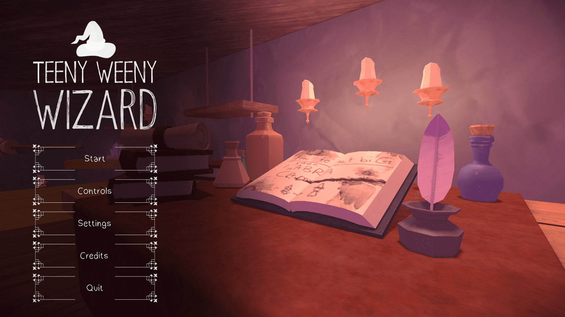 The 3D modelling in Teeny Weeny Wizard focuses on creating a whimsical, oversized world from the perspective of a tiny wizard. Everyday objects are sculpted with exaggerated proportions to highlight the sense of scale, making mundane items like books and furniture seem larger-than-life. This design choice reinforces the feeling of being miniature while allowing players to interact with a familiar yet fantastical environment.