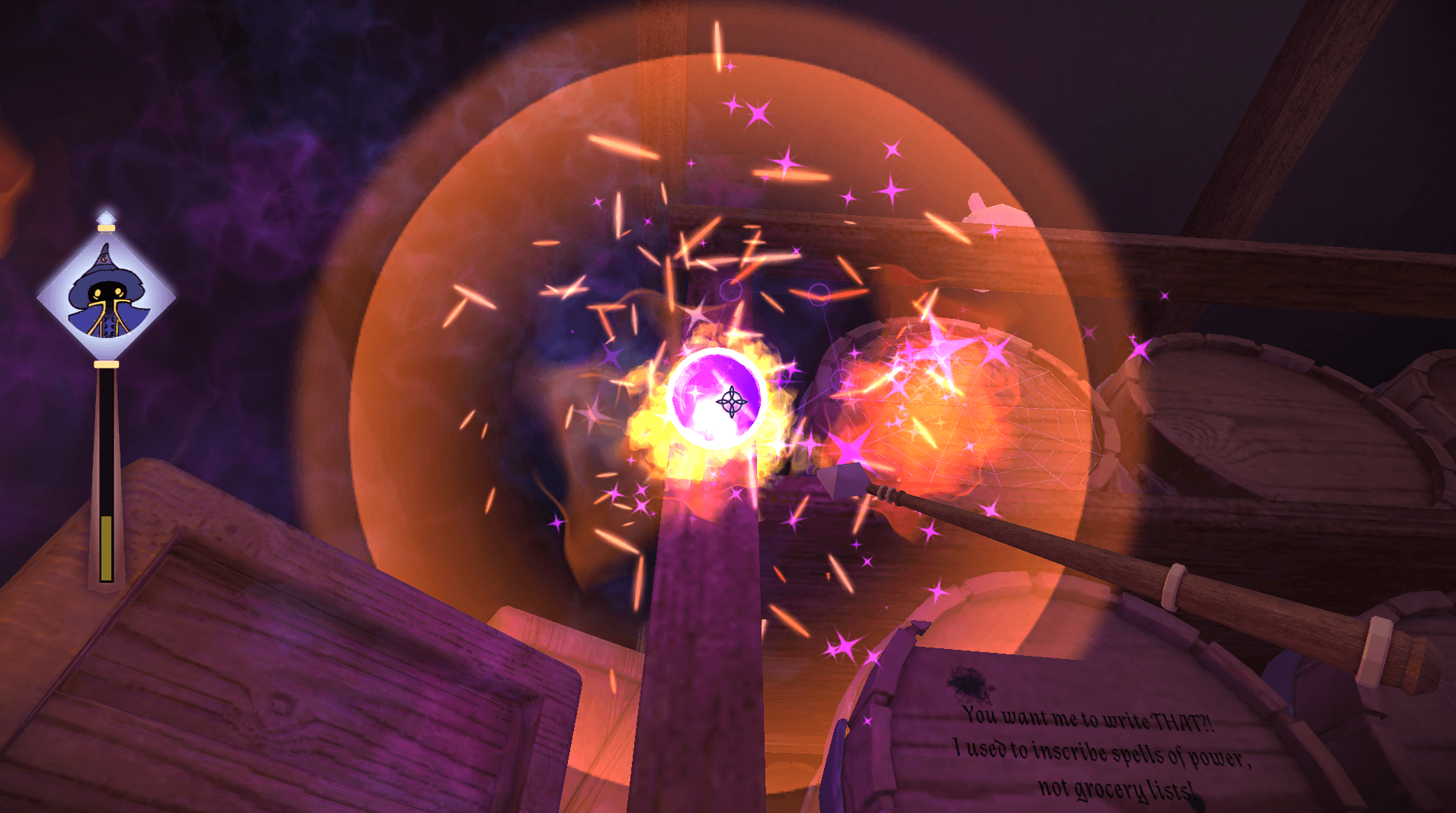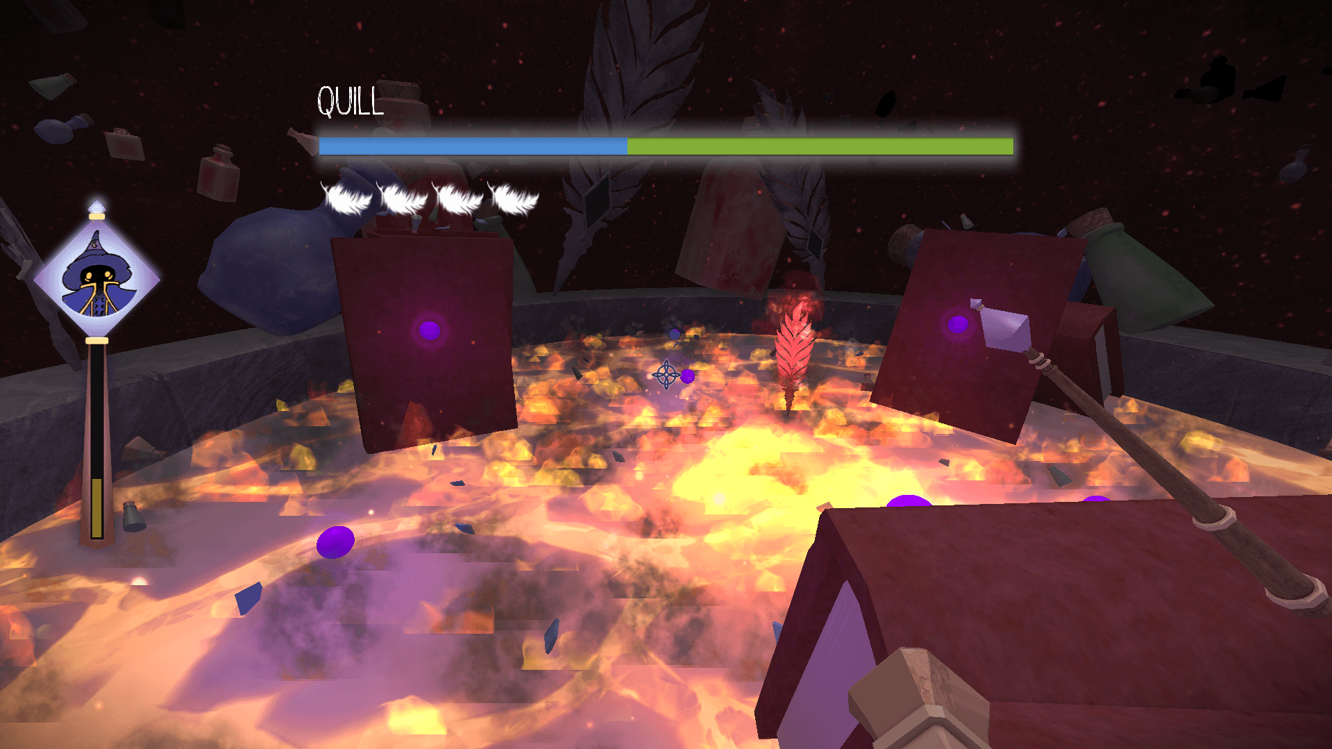 Play as a shrunken apprentice wizard navigating a chaotic world of oversized objects, tricky puzzles, and mischievous creatures. Use telekinesis to solve challenges and survive enchanted encounters, especially against Quill, your once-loyal writing companion turned vengeful boss.