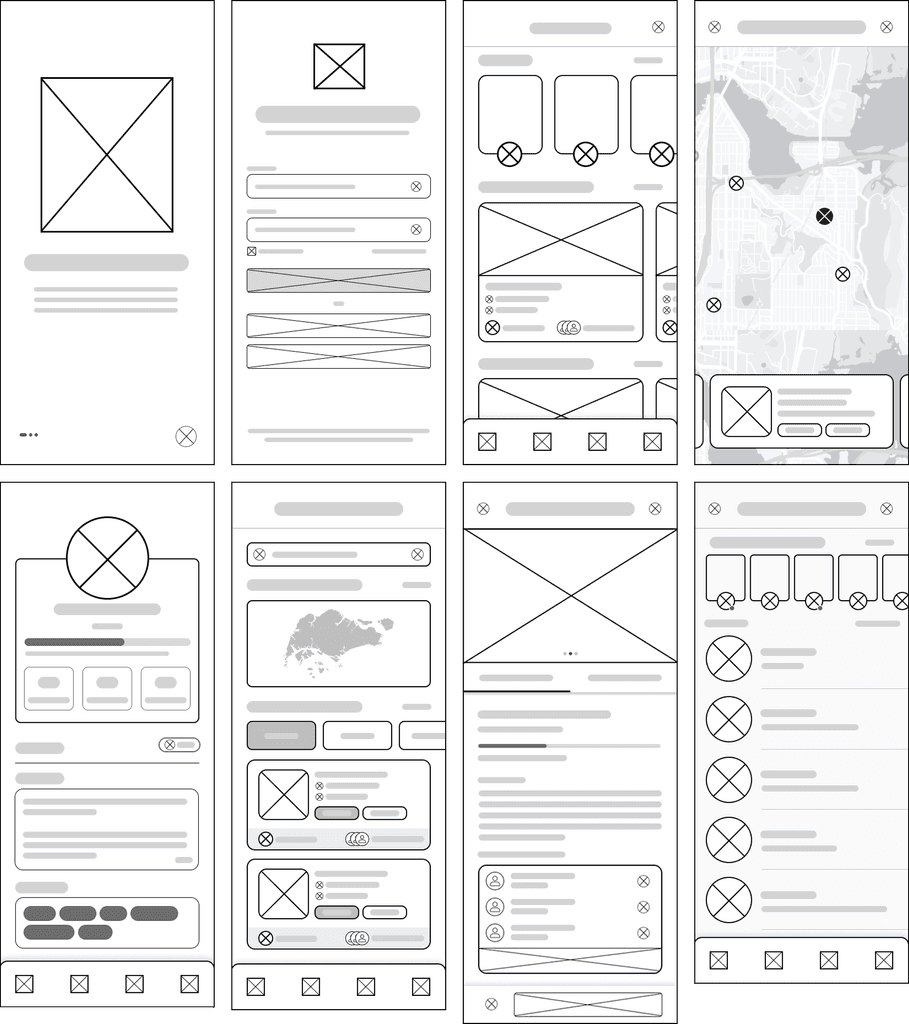 We began with low-fidelity wireframes to explore layout and navigation ideas, focusing on key features like a community board, event discovery, volunteer meet-up creation and sharing, a donation page, and in-app messaging between volunteers and organizers.