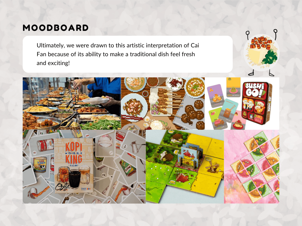 The game cards are inspired by Singapore’s cai fan culture, with each dish card representing familiar and beloved food combinations commonly found at mixed rice stalls.